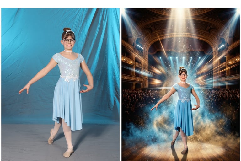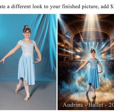 Freezing the energy and grace of dancers in motion, showcasing their dedication and passion. We can corporate backgrounds to support a theme for each child's passion for dance.